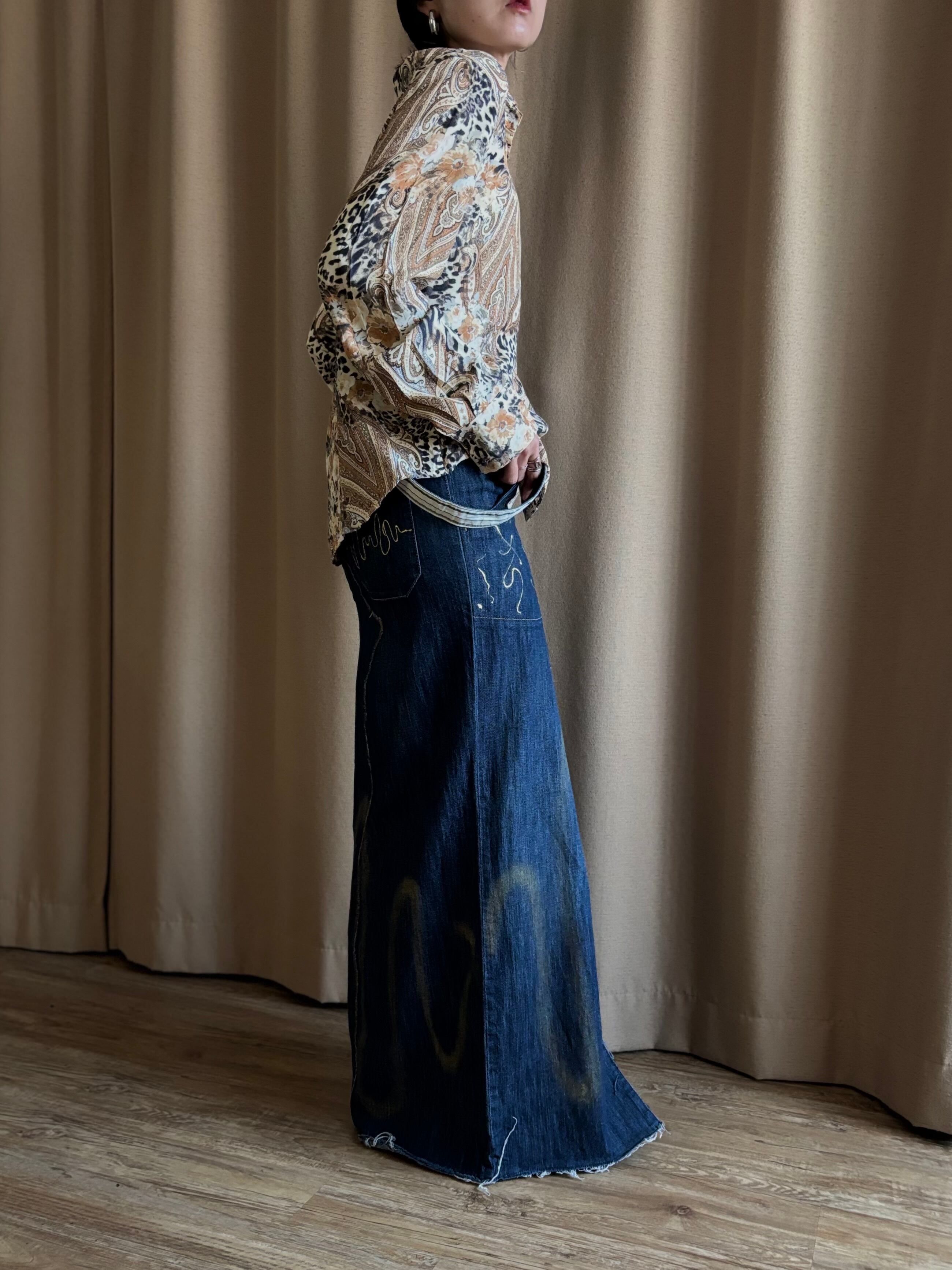 着画でコーディネートしているリメイクデニムスカートも販売商品です。